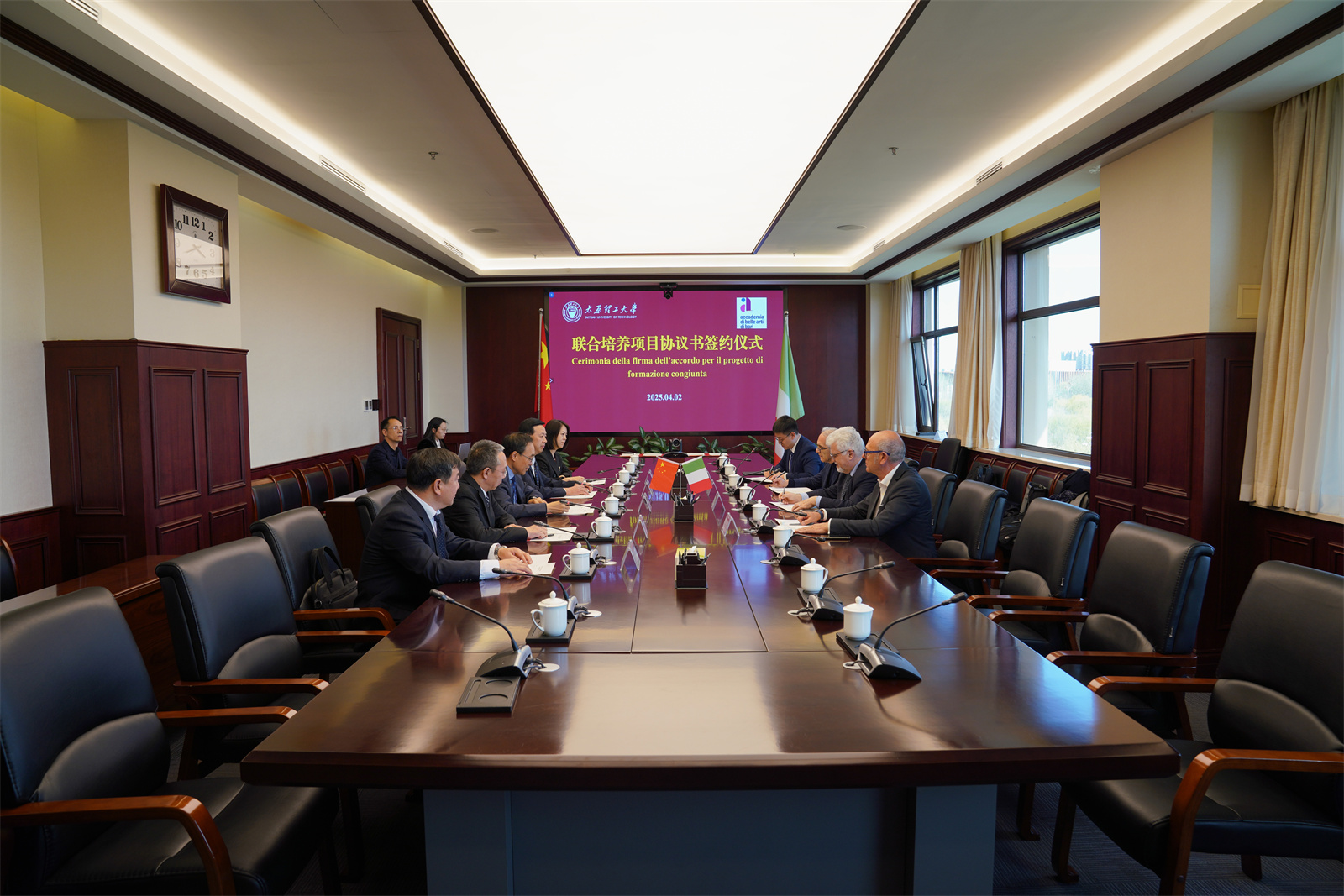 孙宏斌代表学校对安东尼奥·奇凯利院长一行到访表示欢迎,强调学校高度重视国际交流与合作,致力于高水平艺术人才培养。他指出,联合培养项目为相关专业学生提供了跨国学习机会,搭建了学术交流与文化互鉴的平台,推动双方在教育、艺术、设计等领域向纵深合作。他表示,国际合作是推动全球艺术发展不可或缺的重要力量,也是促进中意文化交流的重要桥梁。